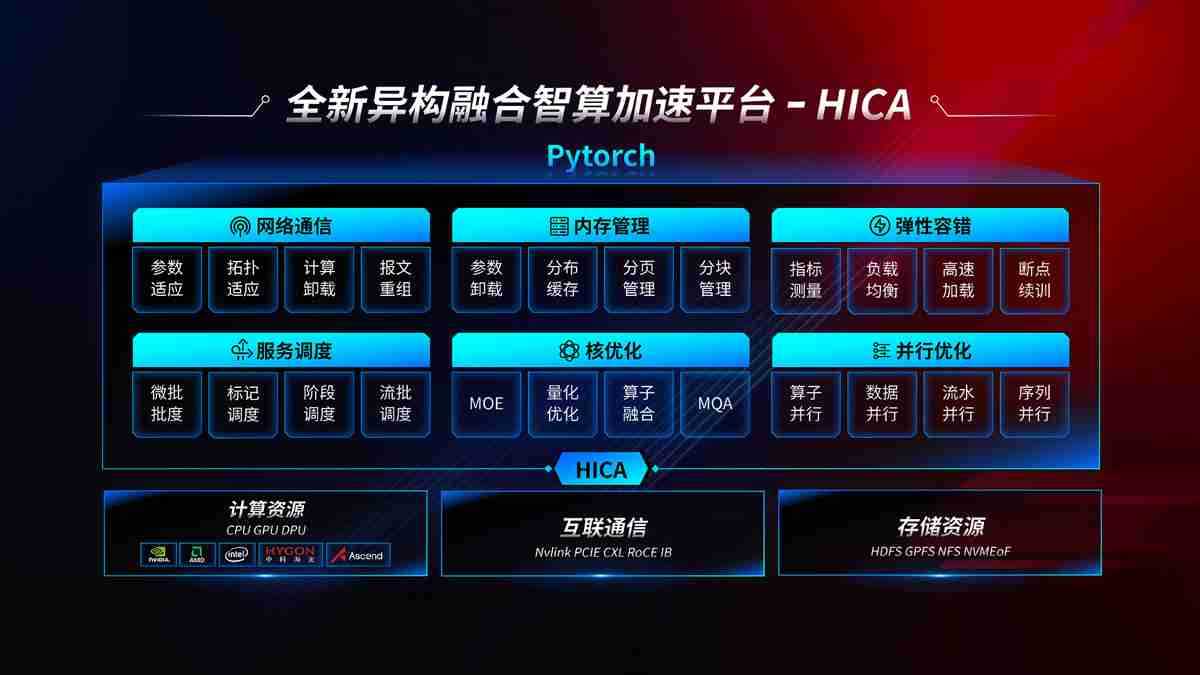 通过自研的服务层、、中间适配层、、、以及调度编排算法,,采用数据并行、、、模型并行等多种并行方式,,,,把并行计算任务进行有效的分解,,,使其分别由相应的软件栈和算力资源来承接。。。。当GPU资源变化,,,,HICA可以实时动态调度计算子任务并调整模型拓扑和架构,,,,以充分聚合各种算力资源。。。。